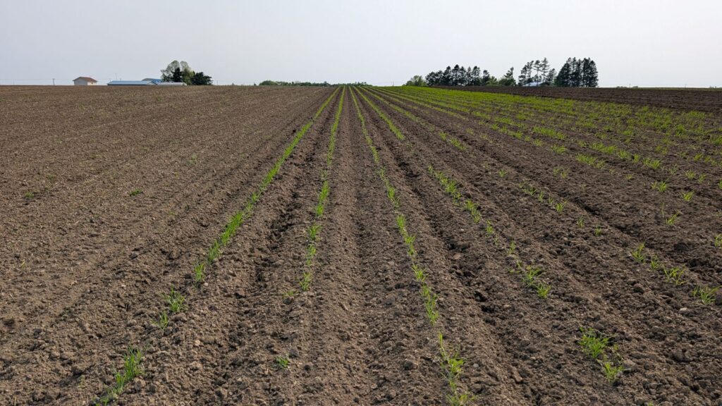 天気と緑肥の播種作業と畑の条件などで、いつもより1週間ほど遅れの5/28に播種しました。