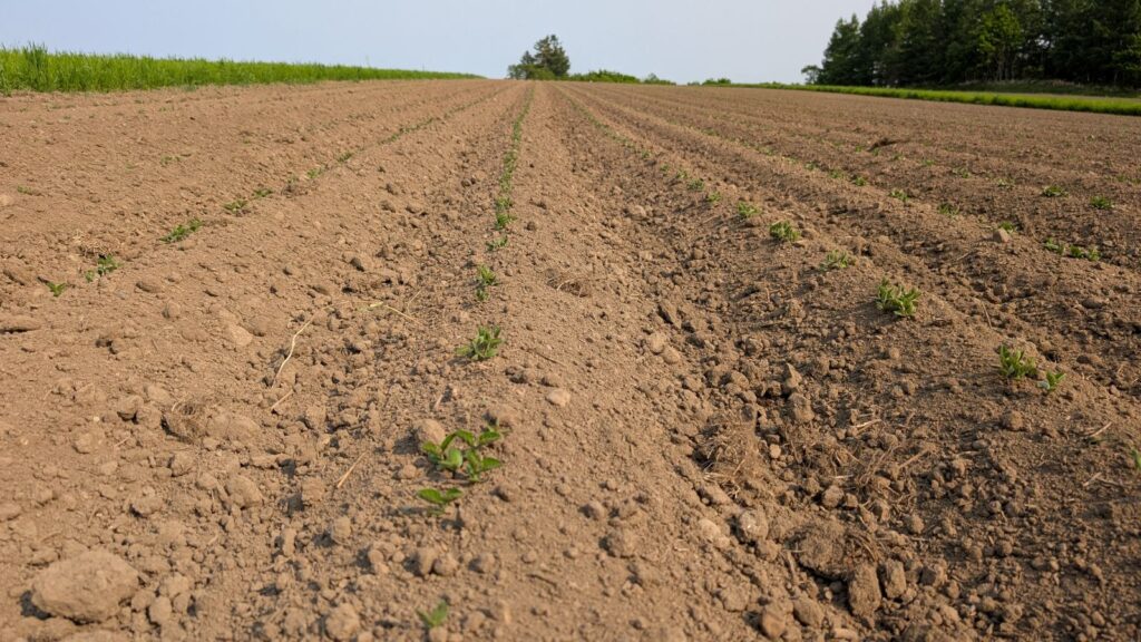 大豆の最終中耕(機械除草)作業の7月中旬以降、2年間 浅い耕起もしません。